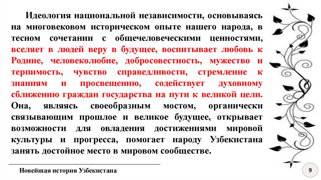 Идеология национальной независимости, основываясьна многовековом историческом опыте нашего народа, в