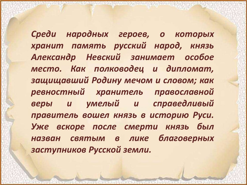 Среди народных героев, о которыххранит память русский народ, князь