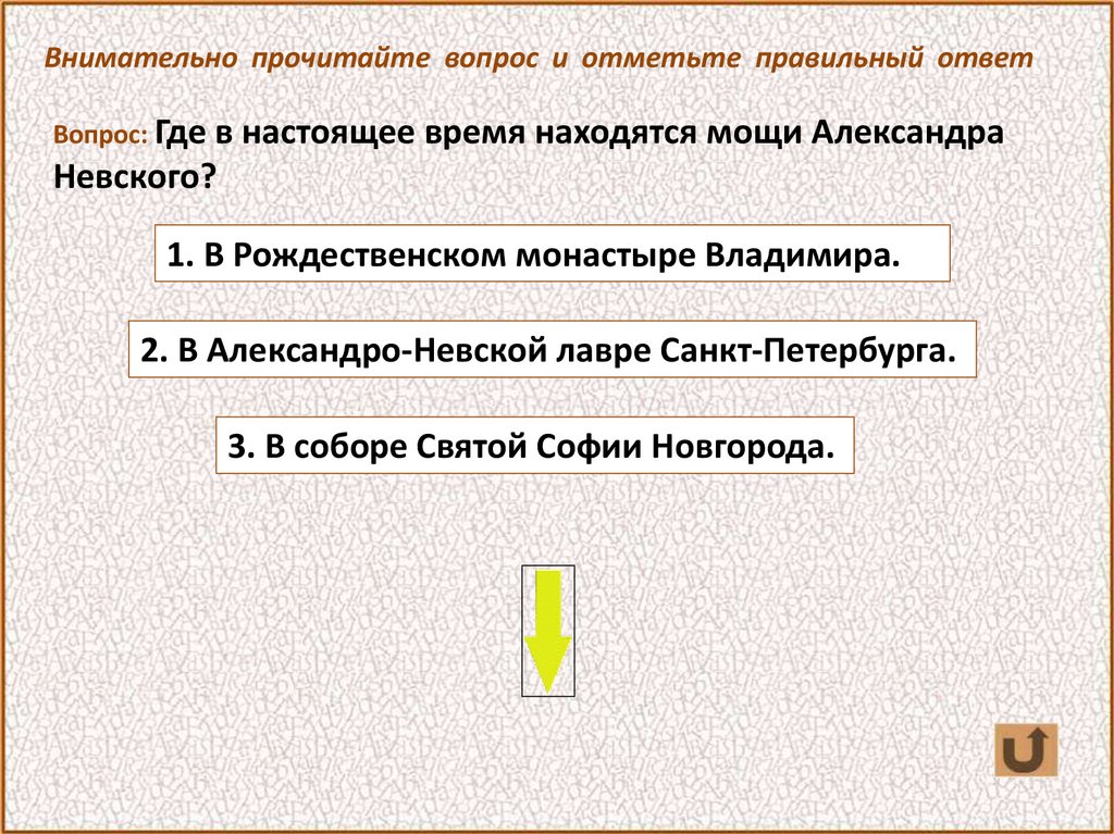 Внимательно прочитайте вопрос и отметьте правильный ответВопрос: Где в настоящее время находятся мощи Александра