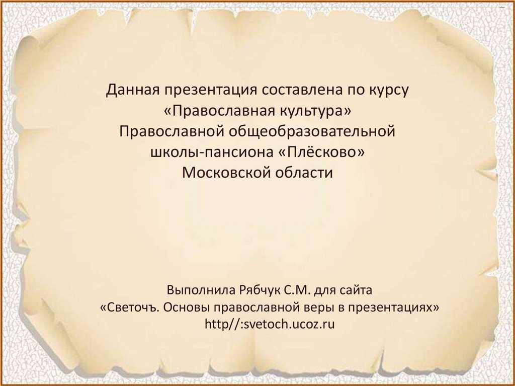 Данная презентация составлена по курсу«Православная культура»
