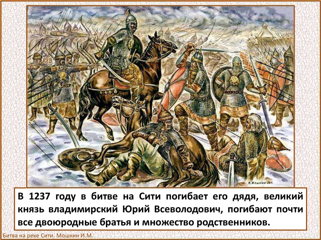 пехота, за ней — княжеская дружина. Тяжелые