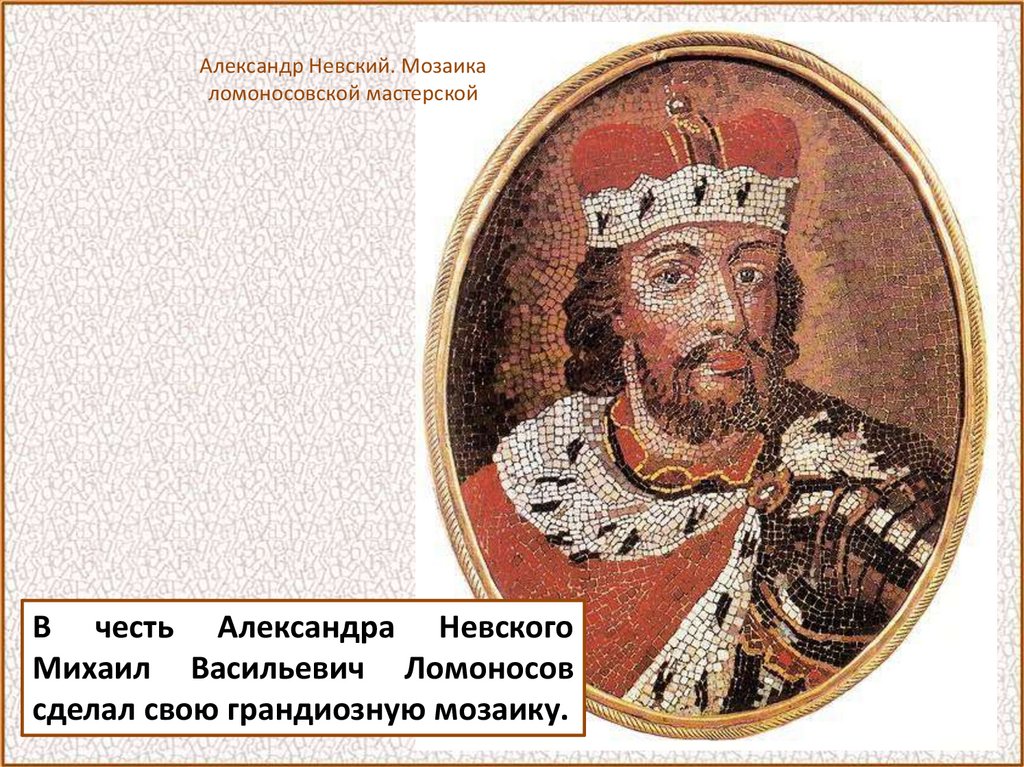 Александр Невский. Мозаикаломоносовской мастерской