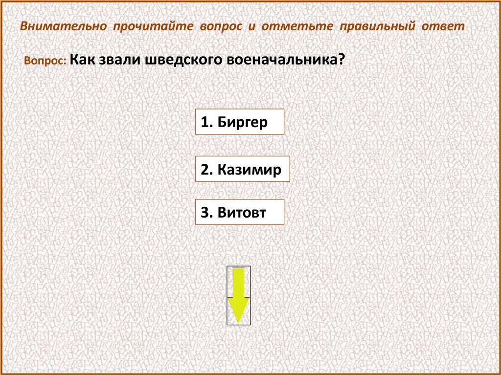 Внимательно прочитайте вопрос и отметьте правильный ответВопрос: Как звали шведского военачальника?