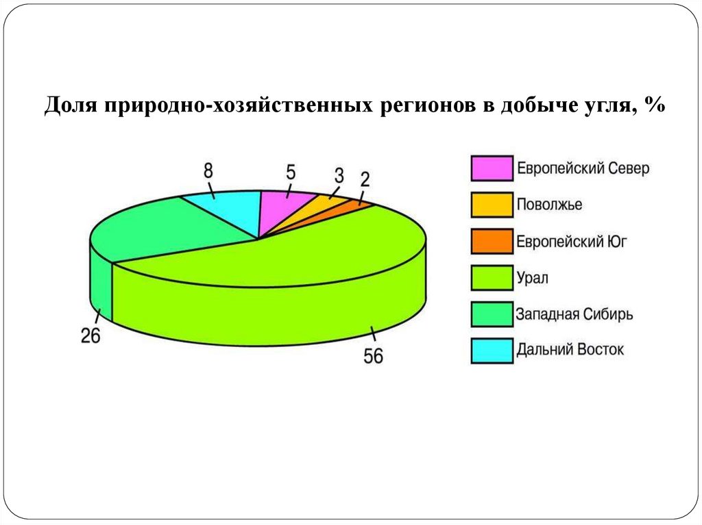 Доля природно-хозяйственных регионов в добыче угля, %14.