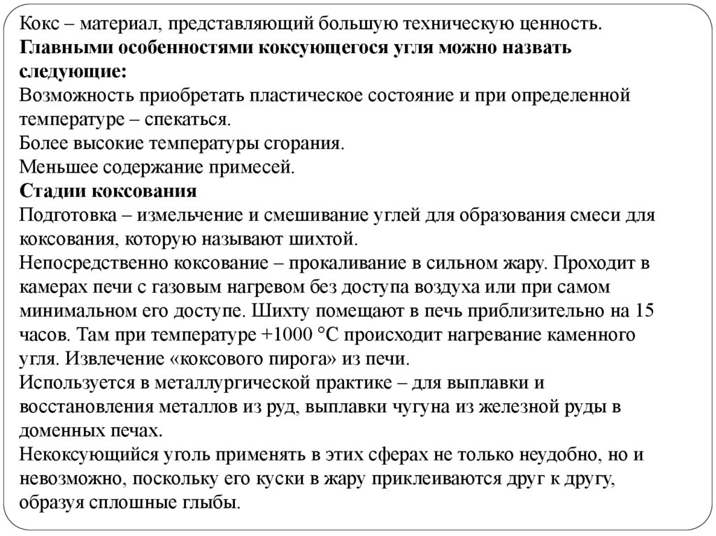 Кокс – материал, представляющий большую техническую ценность.Главными особенностями коксующегося угля можно назвать