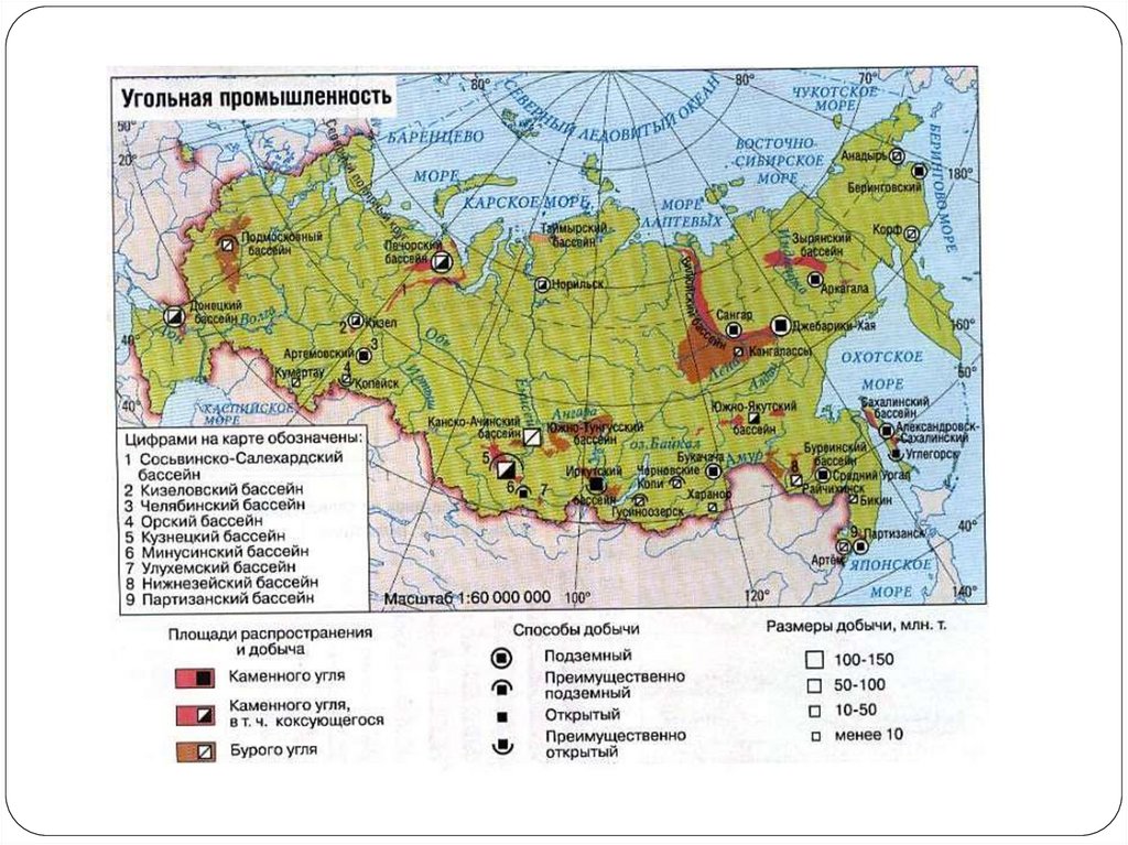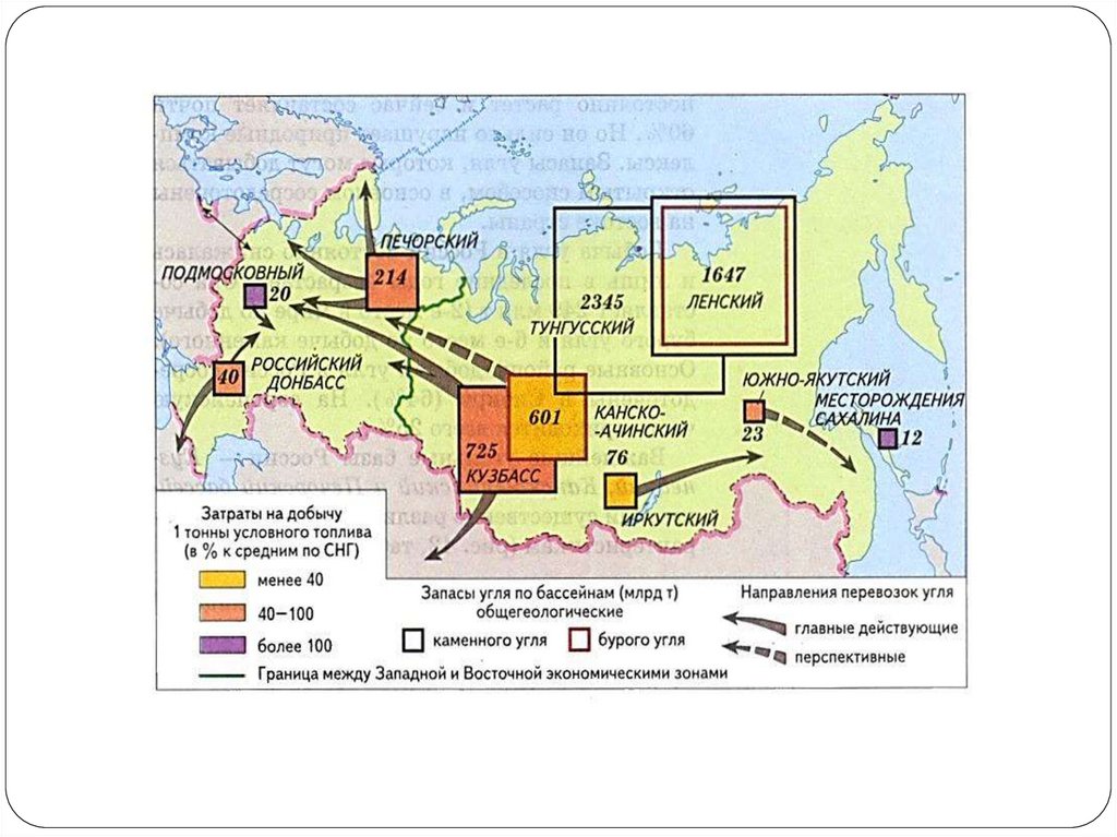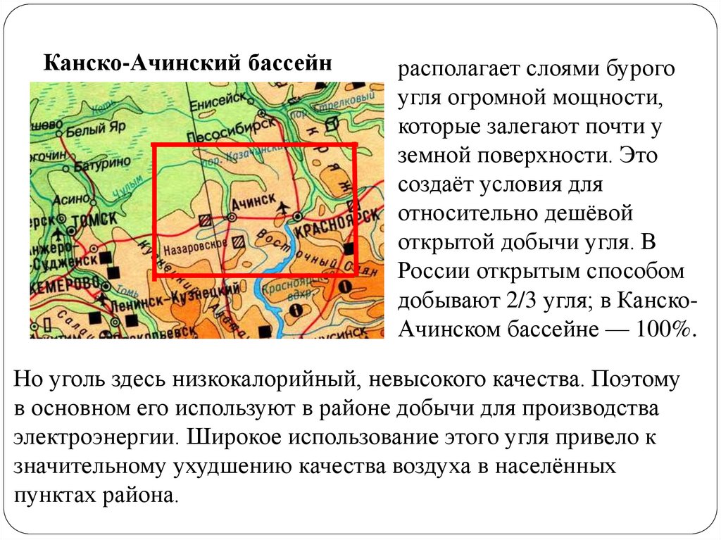 добывают 2/3 угля; в КанскоАчинском бассейне — 100%.