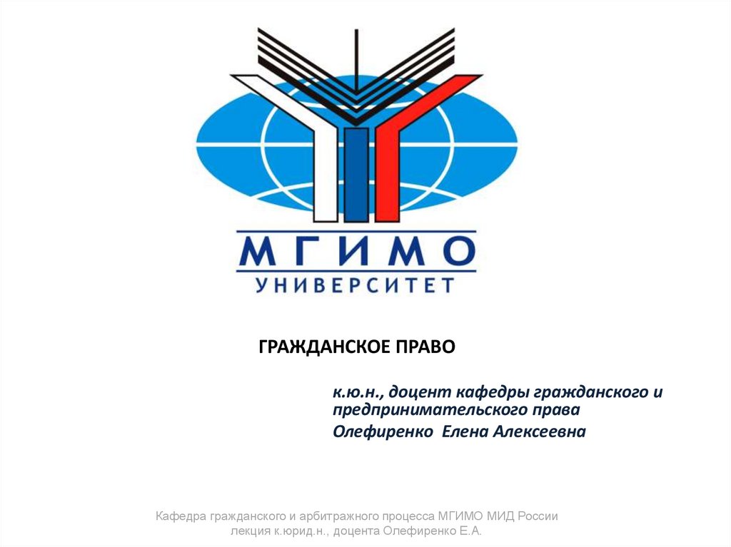 Кафедра гражданского и арбитражного процесса МГИМО МИД Россиилекция к.юрид.н., доцента Олефиренко Е.А.