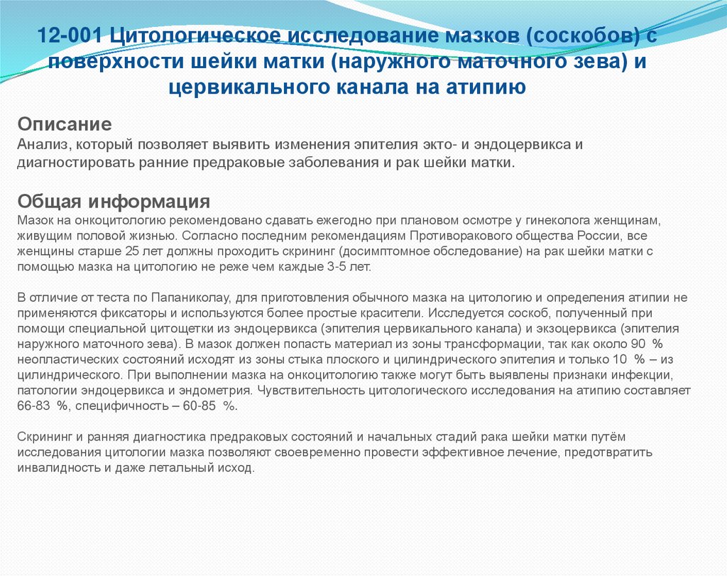 по методу Папаниколау с соблюдением методики проведения теста и условий подготовки к