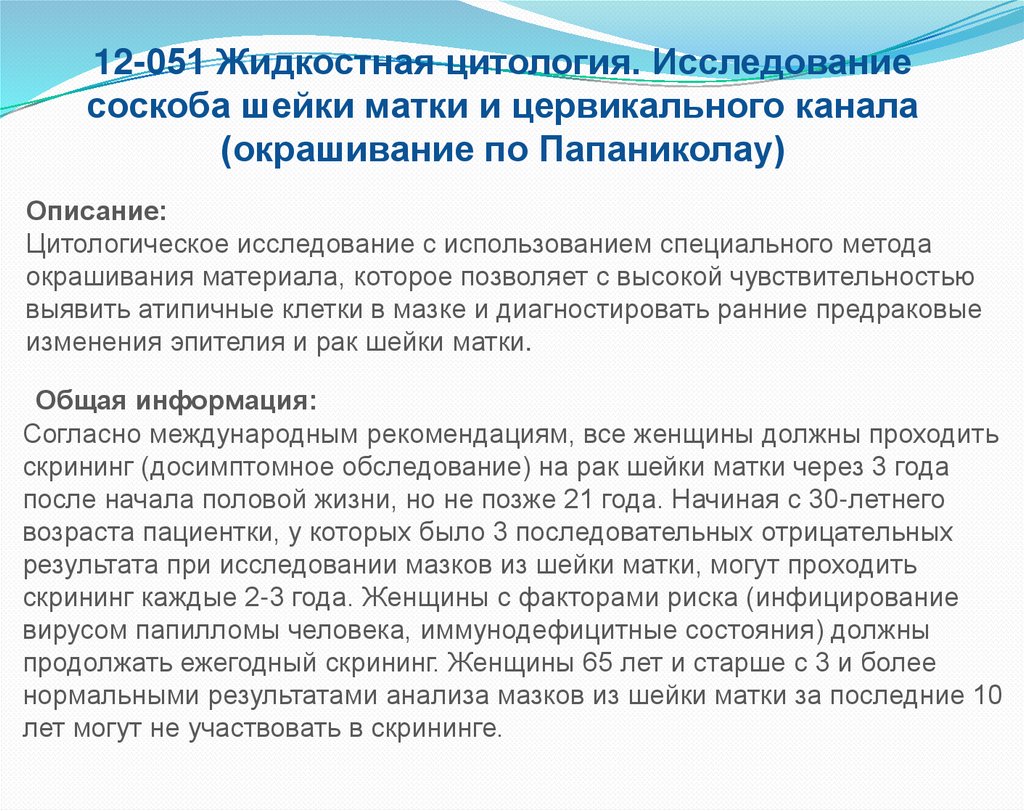 12-051 Жидкостная цитология. Исследованиесоскоба шейки матки и цервикального канала