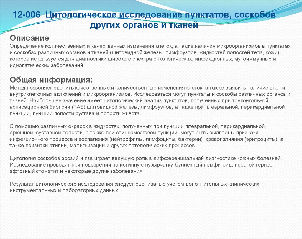 Результат цитологического исследования следует оценивать с учетом дополнительных клинических,