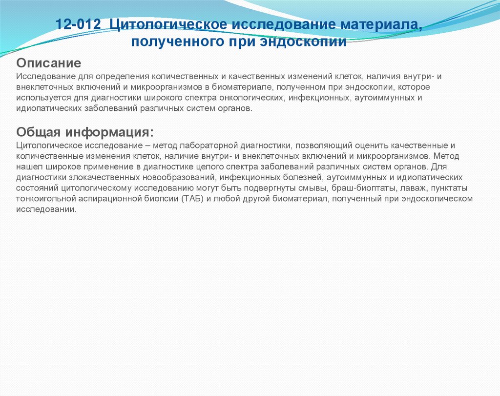 12-012 Цитологическое исследование материала,полученного при эндоскопии