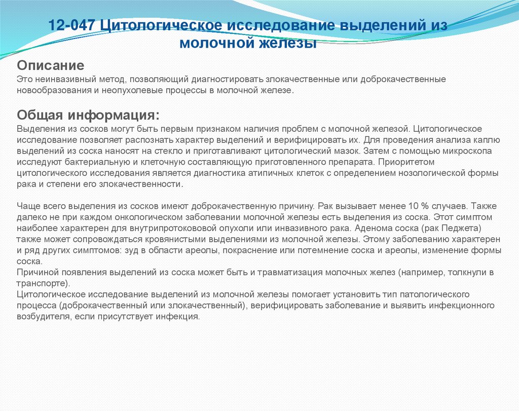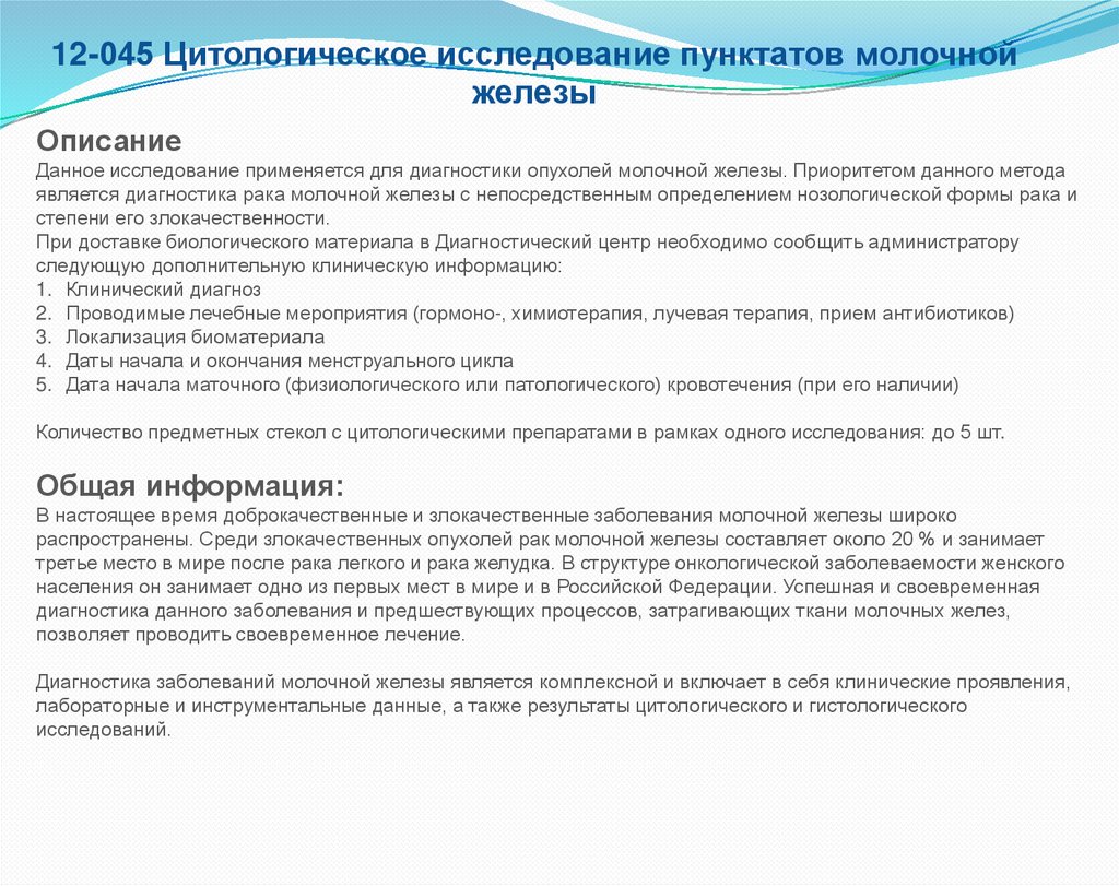 12-045 Цитологическое исследование пунктатов молочнойжелезы