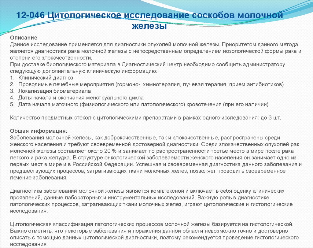 12-046 Цитологическое исследование соскобов молочнойжелезы