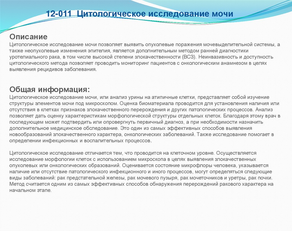 Цитологическое исследование мочи, или анализ урины на атипичные клетки, представляет собой изучение