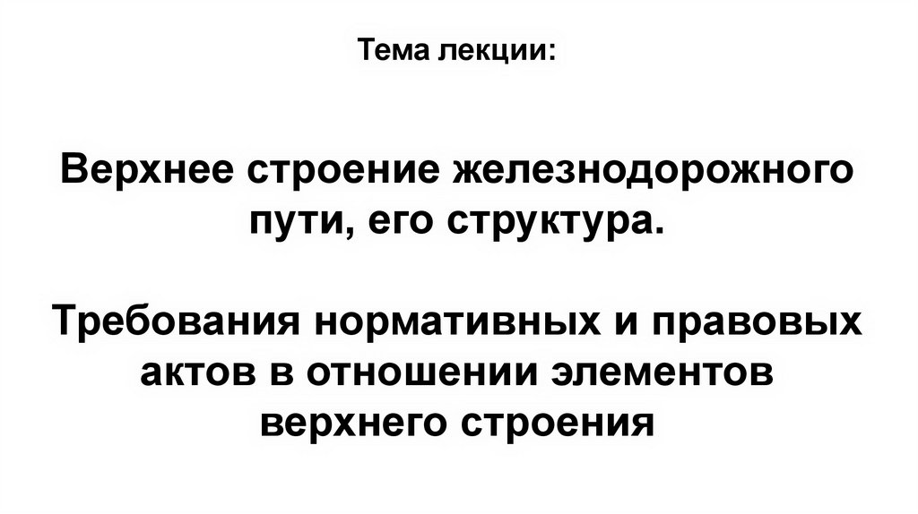 1. Тема лекции: Верхнее строение железнодорожного пути, его структура. Требования нормативных и правовых актов в отношении