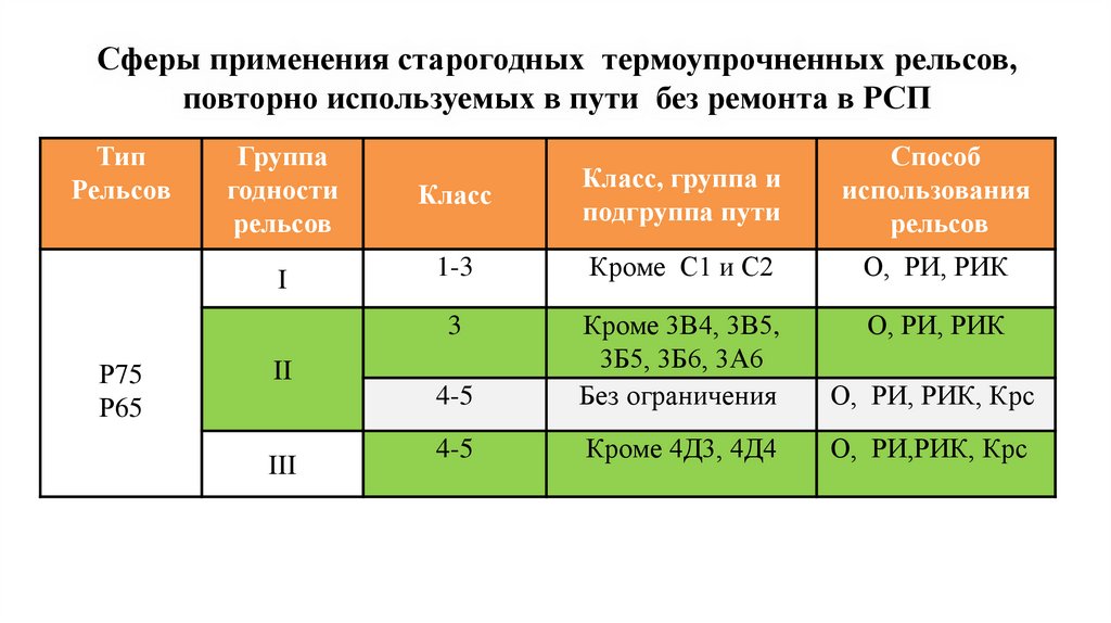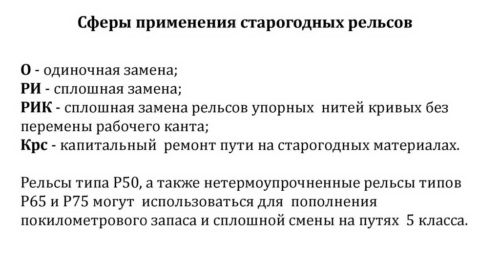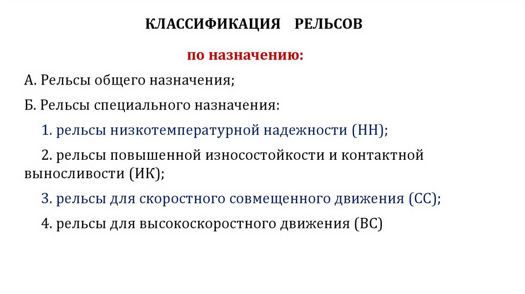 КЛАССИФИКАЦИЯ РЕЛЬСОВпо назначению: