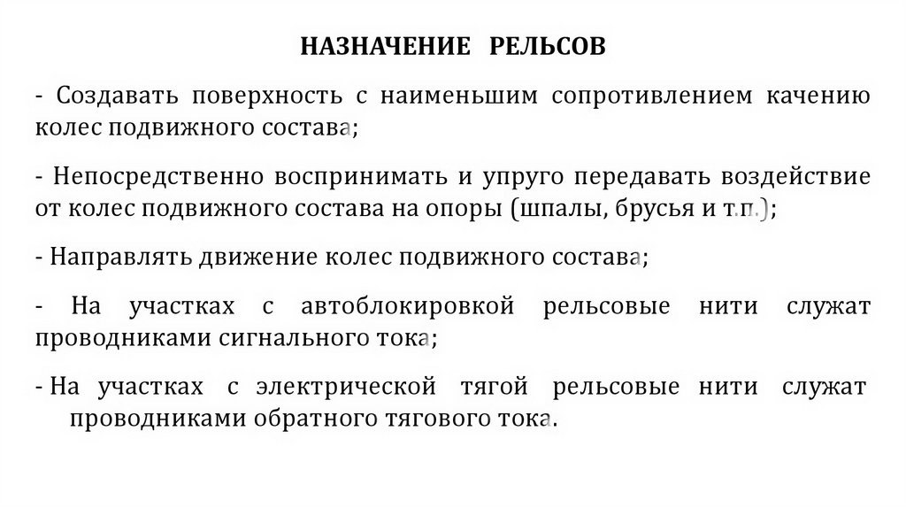 НАЗНАЧЕНИЕ РЕЛЬСОВ- Создавать поверхность с наименьшим сопротивлением качению