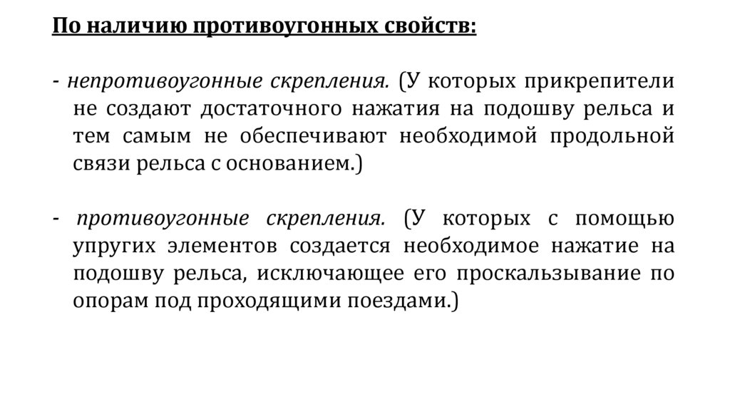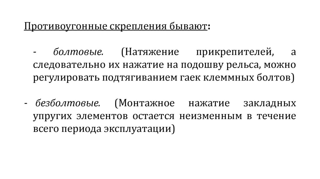 Продольные силы, вызывающие угон рельсов, должны быть от рельсовпереданы на подрельсовое основание и далее на балласт. Для этого на