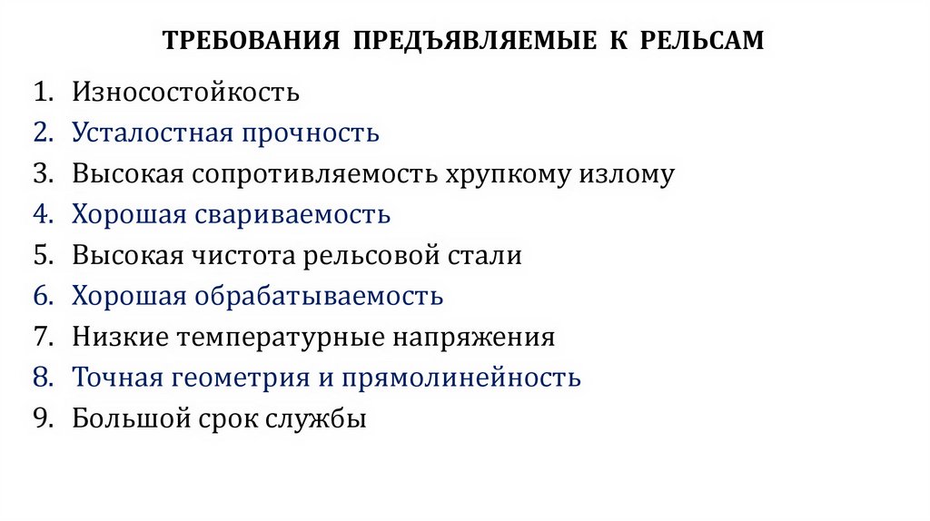 ТРЕБОВАНИЯ ПРЕДЪЯВЛЯЕМЫЕ К РЕЛЬСАМ1. Износостойкость