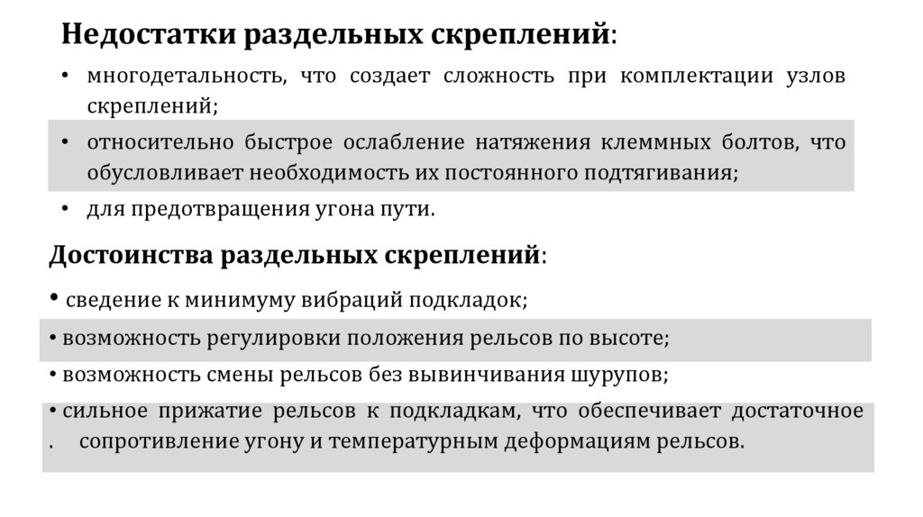 стабильностью рельсовой колеи, малодетальностью, отсутствием