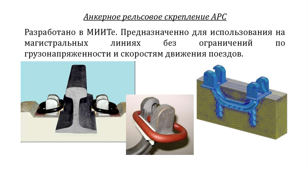 Анкерное рельсовое скрепление АРСРазработано в МИИТе. Предназначенно для использования на