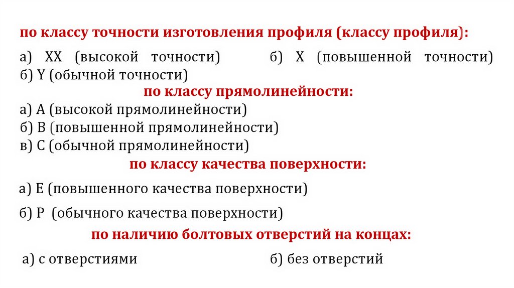 по классу точности изготовления профиля (классу профиля):а) ХХ (высокой точности)