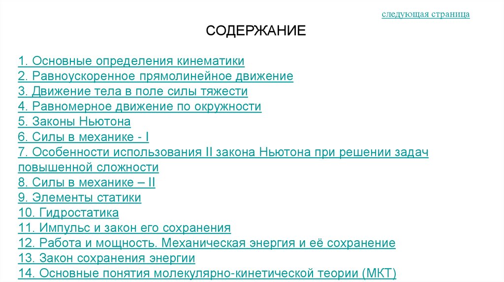 1. 1. Основные определения кинематики 2. Равноускоренное прямолинейное движение 3. Движение тела в поле силы тяжести 4.