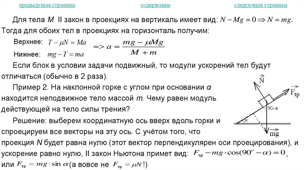 а и N. При этом ни в коем случае нельзя считать, что N=mg.