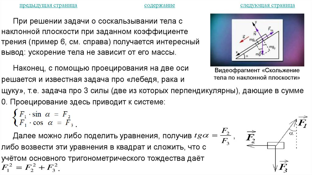 щуку», т.е. задача про 3 силы (две из которых перпендикулярны), дающие в сумме