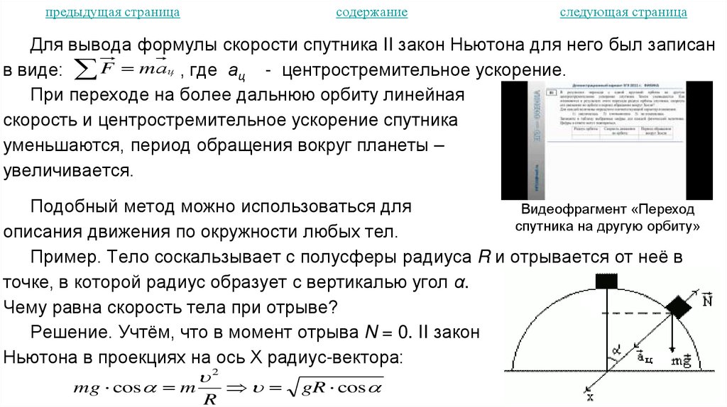 Для вывода формулы скорости спутника II закон Ньютона для него был записан