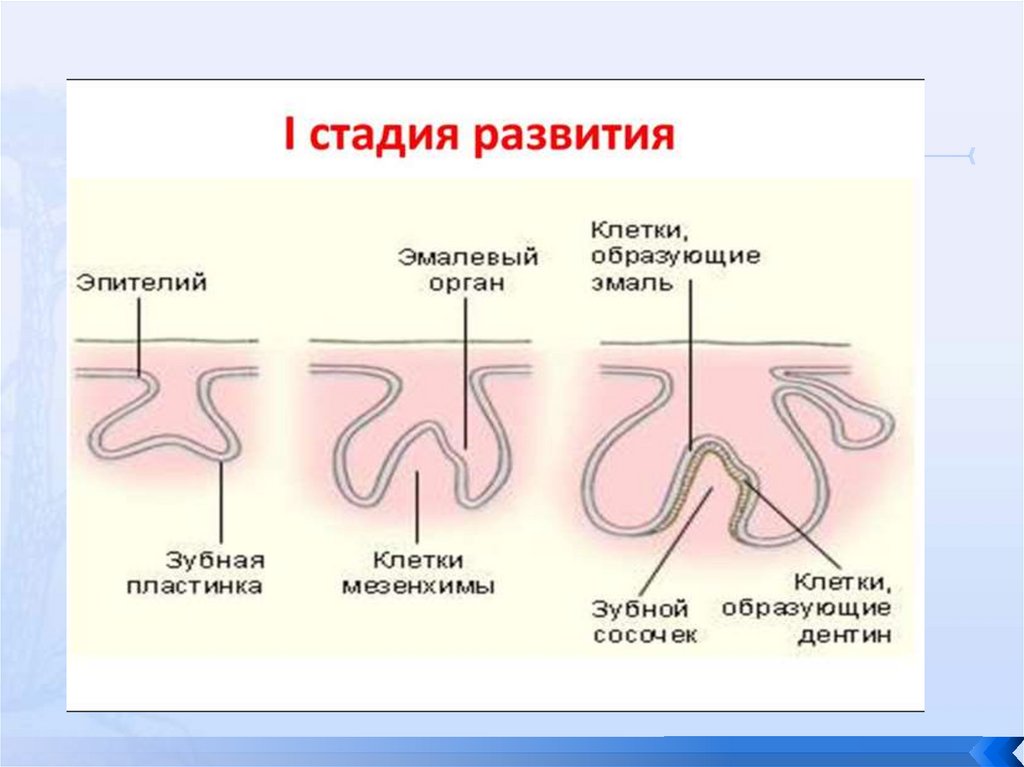 Зубы являются производными слизистой оболочкиротовой полости. Из эпителия слизистой оболочки