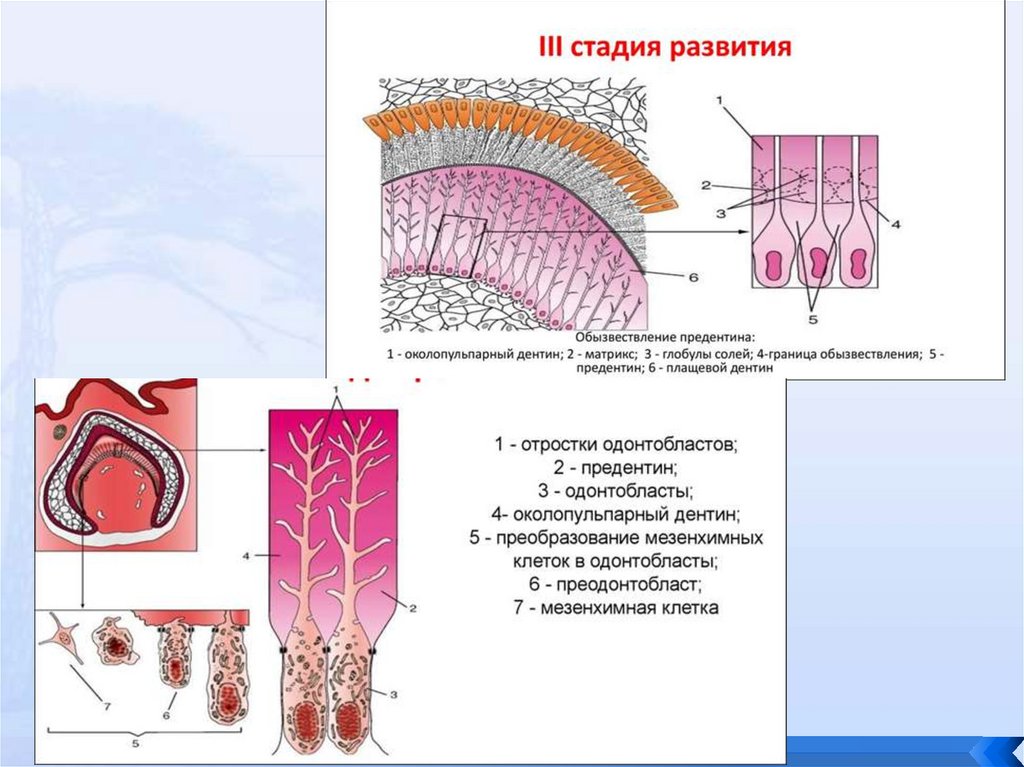 На третьей стадии (13-20 неделя) происходитобразование тканей и коронки зуба с зубным