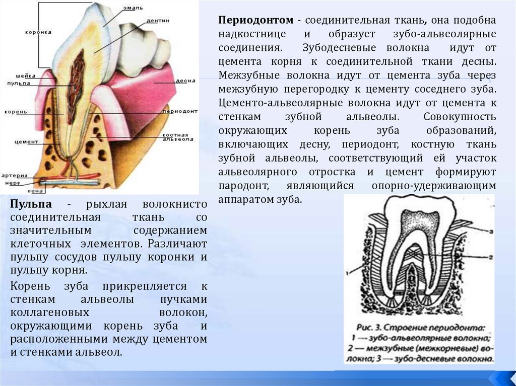 пульпа, цемент, окружающие зуб твердые и мягкие