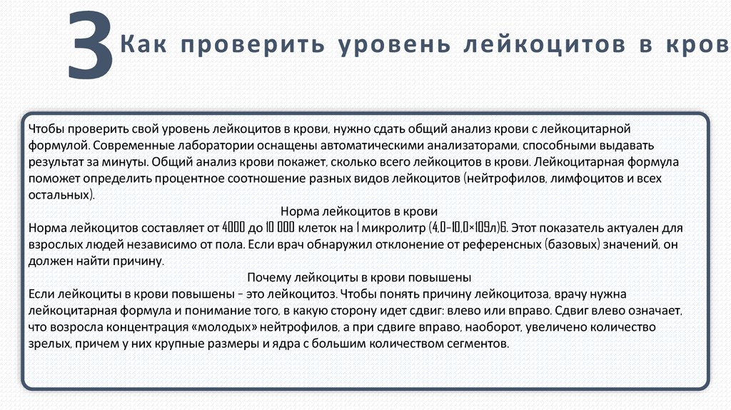 результат за минуты. Общий анализ крови покажет, сколько всего лейкоцитов в крови. Лейкоцитарная формула