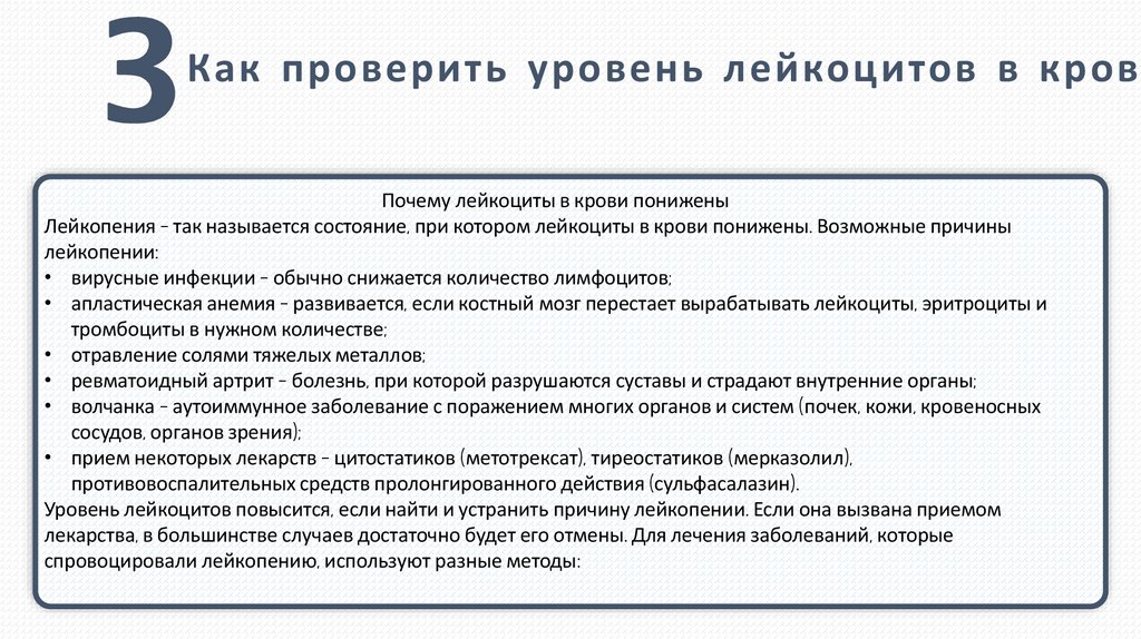 спровоцировали лейкопению, используют разные методы: