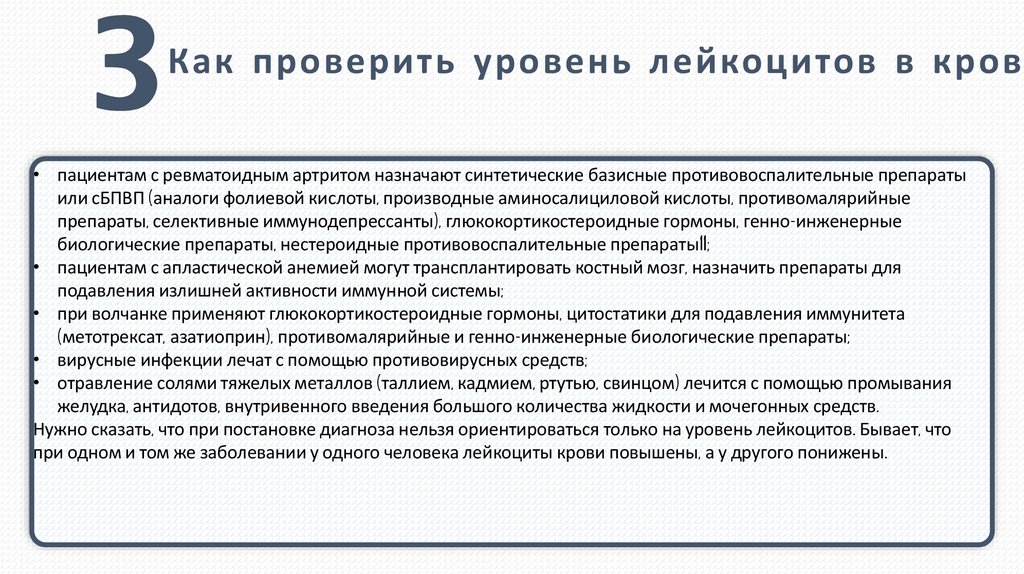 Как проверить уровень лейкоцитов в крови• пациентам с ревматоидным артритом назначают синтетические базисные противовоспалительные препараты