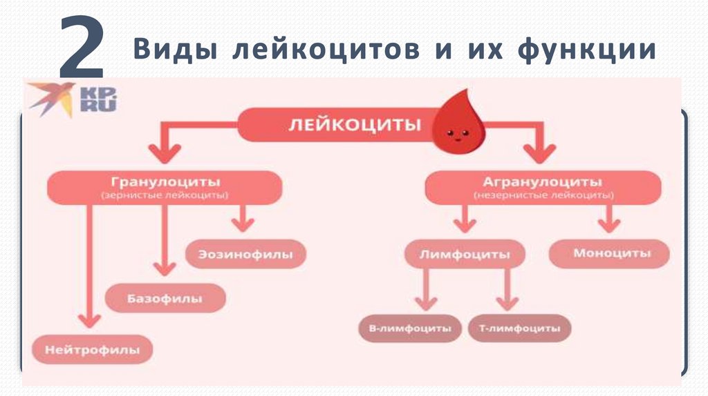 Всего существует 5 видов лейкоцитов, которые в зависимости от строения делятся на 2 большие
