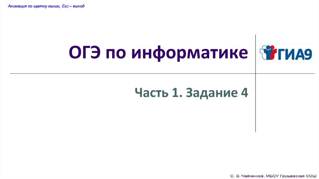 Анимация по щелчку мыши, Esc – выходОГЭ по информатике
