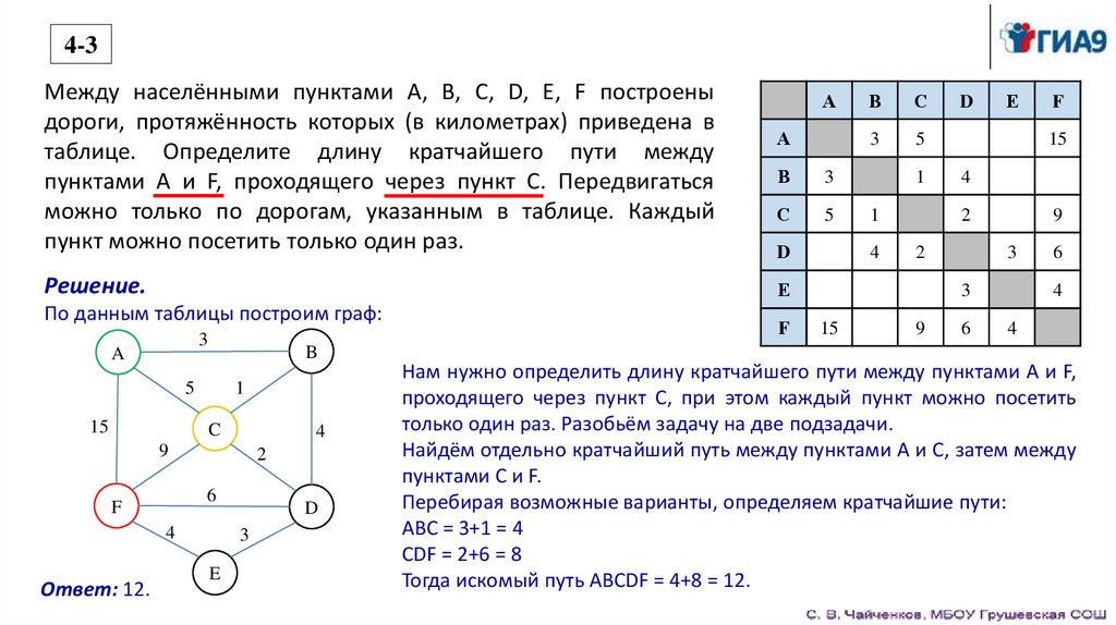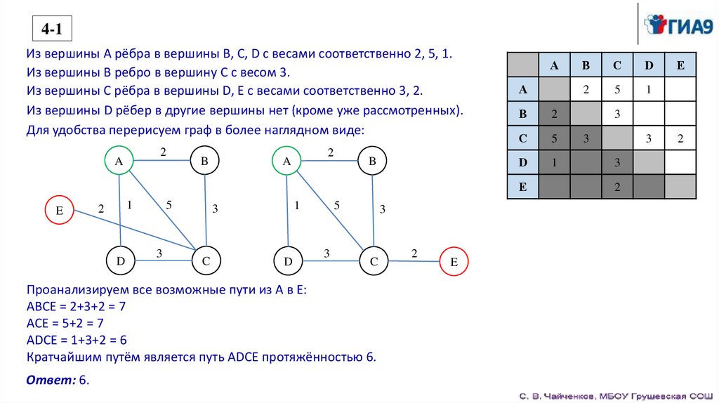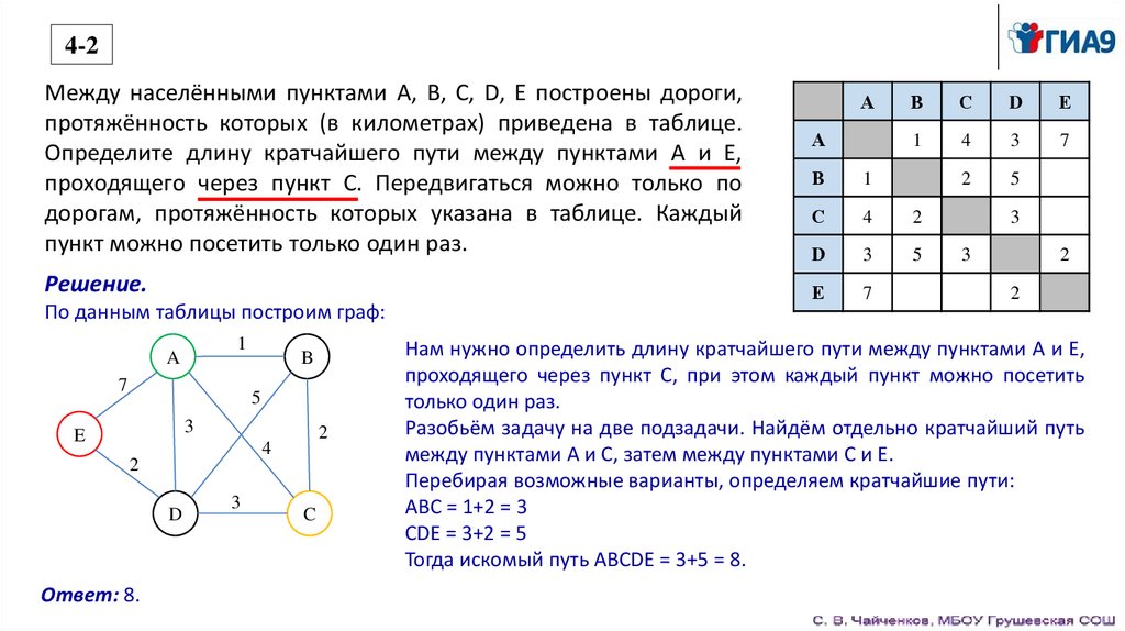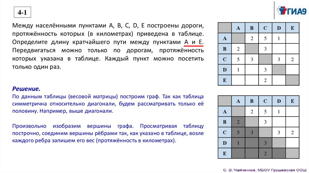 таблице. Определите длину кратчайшего пути между