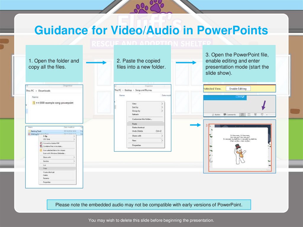 Please note the embedded audio may not be compatible with early versions of PowerPoint.