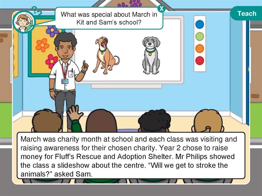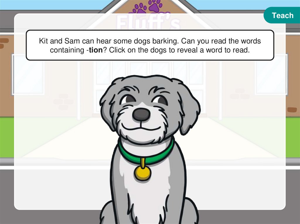 TeachKit and Sam can hear some dogs barking. Can you read the words