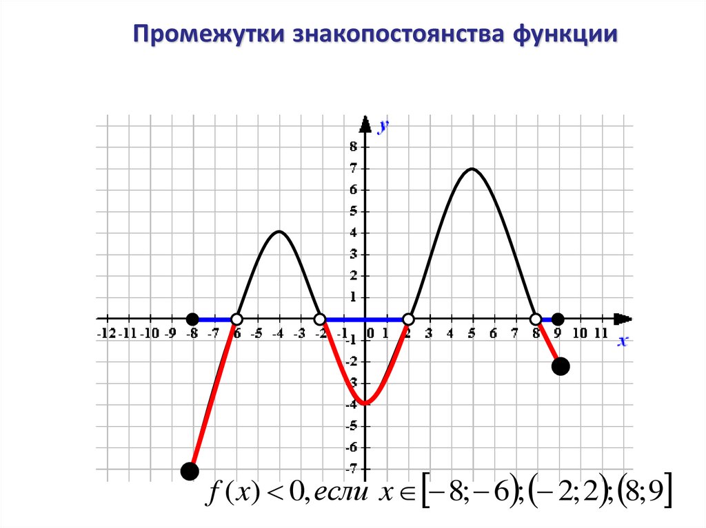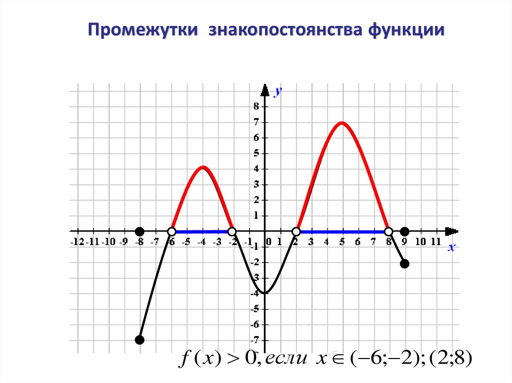 Промежутки знакопостоянства функцииf ( x) 0, если x 8; 6 ; 2; 2 ; 8; 9