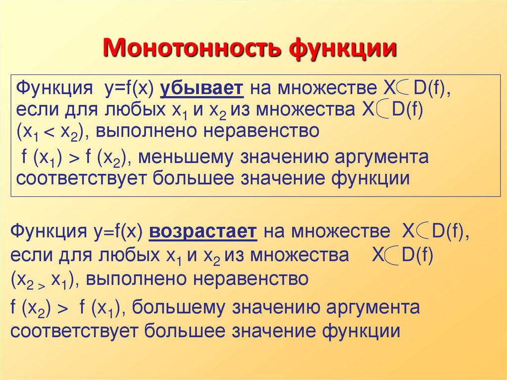 Монотонность функцииФункция у=f(х) убывает на множестве X D(f),