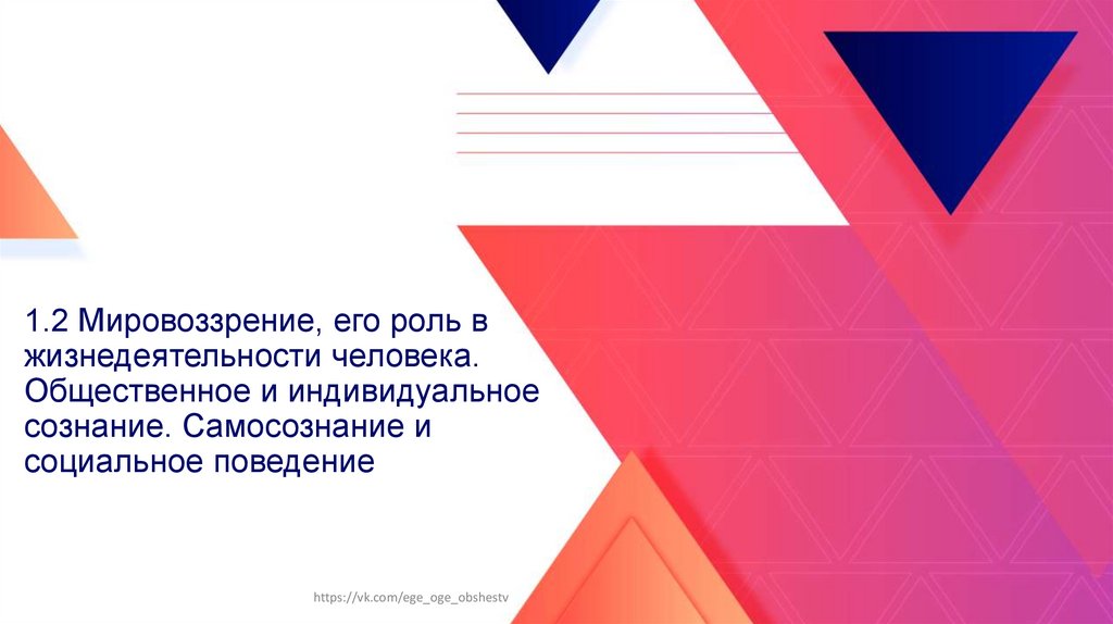 1. 1.2 Мировоззрение, его роль в жизнедеятельности человека. Общественное и индивидуальное сознание. Самосознание и социальное