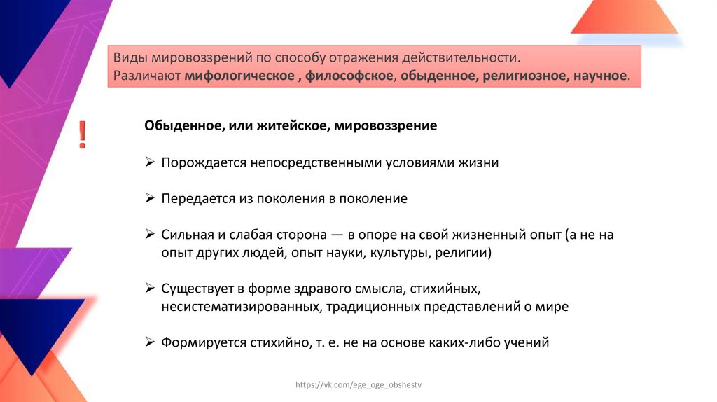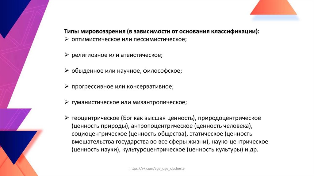 (мироощущение и мировосприятие)