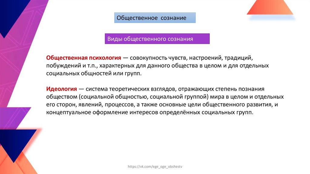 Общественное сознаниеВиды общественного сознания