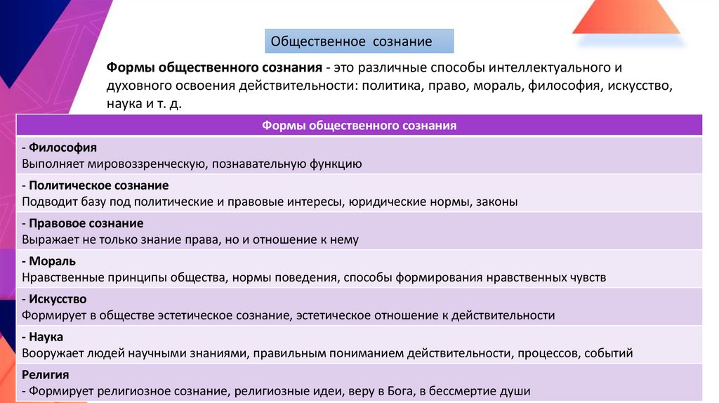 Общественное сознаниеФормы общественного сознания - это различные способы интеллектуального и