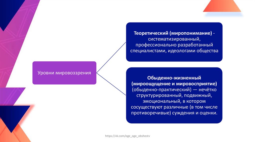 Теоретический (миропонимание) систематизированный,профессионально разработанный