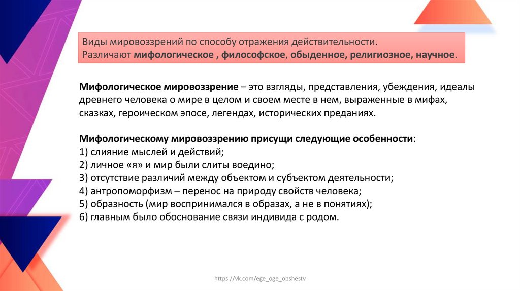 Мифологическое мировоззрение – это взгляды, представления, убеждения, идеалы