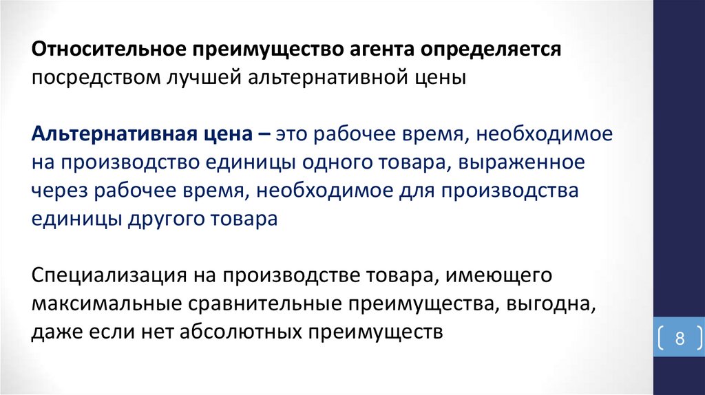 Относительное преимущество агента определяетсяпосредством лучшей альтернативной цены